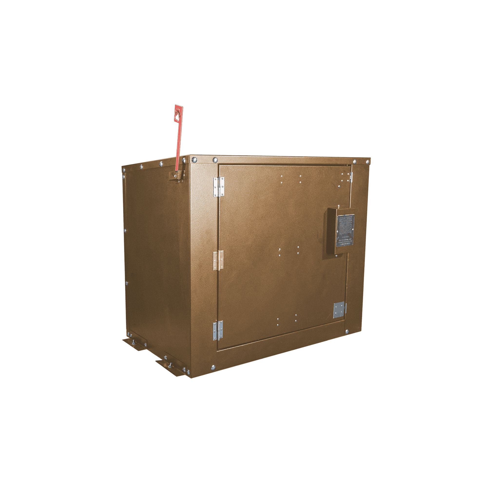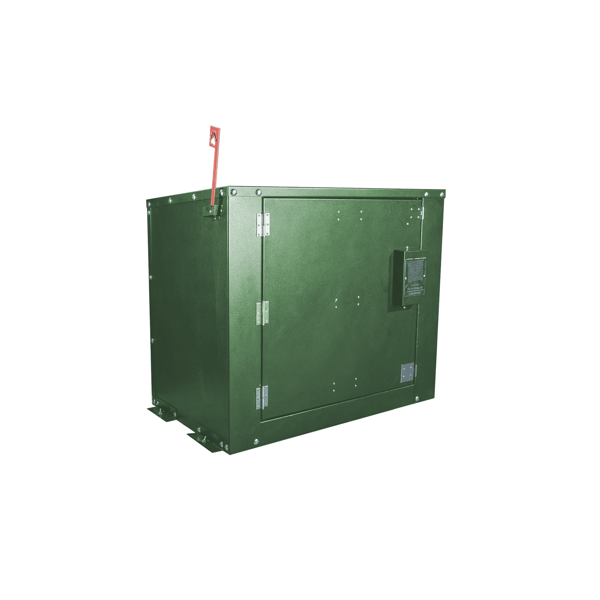 Fabricated from 14-gauge galvanized sheet metal, each enclosure is built for strength, durability, and long-term outdoor exposure. Additional reinforcement includes a 16-gauge stainless steel kick plate and upper and lower slam-latch striker plates for enhanced impact resistance and reliability.