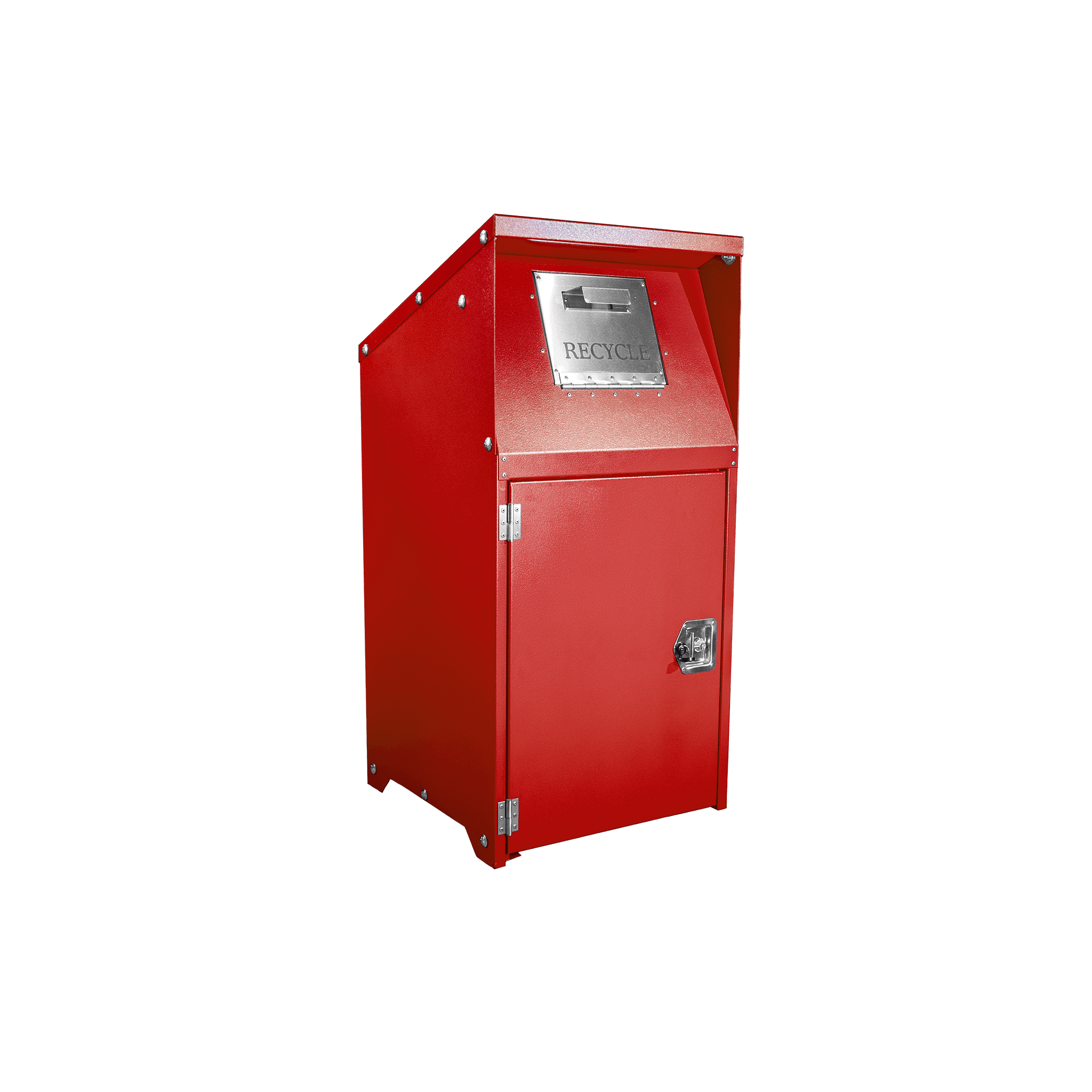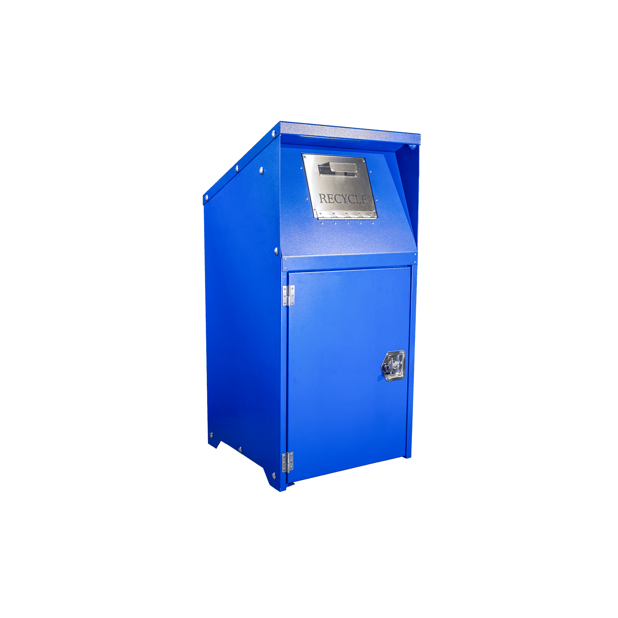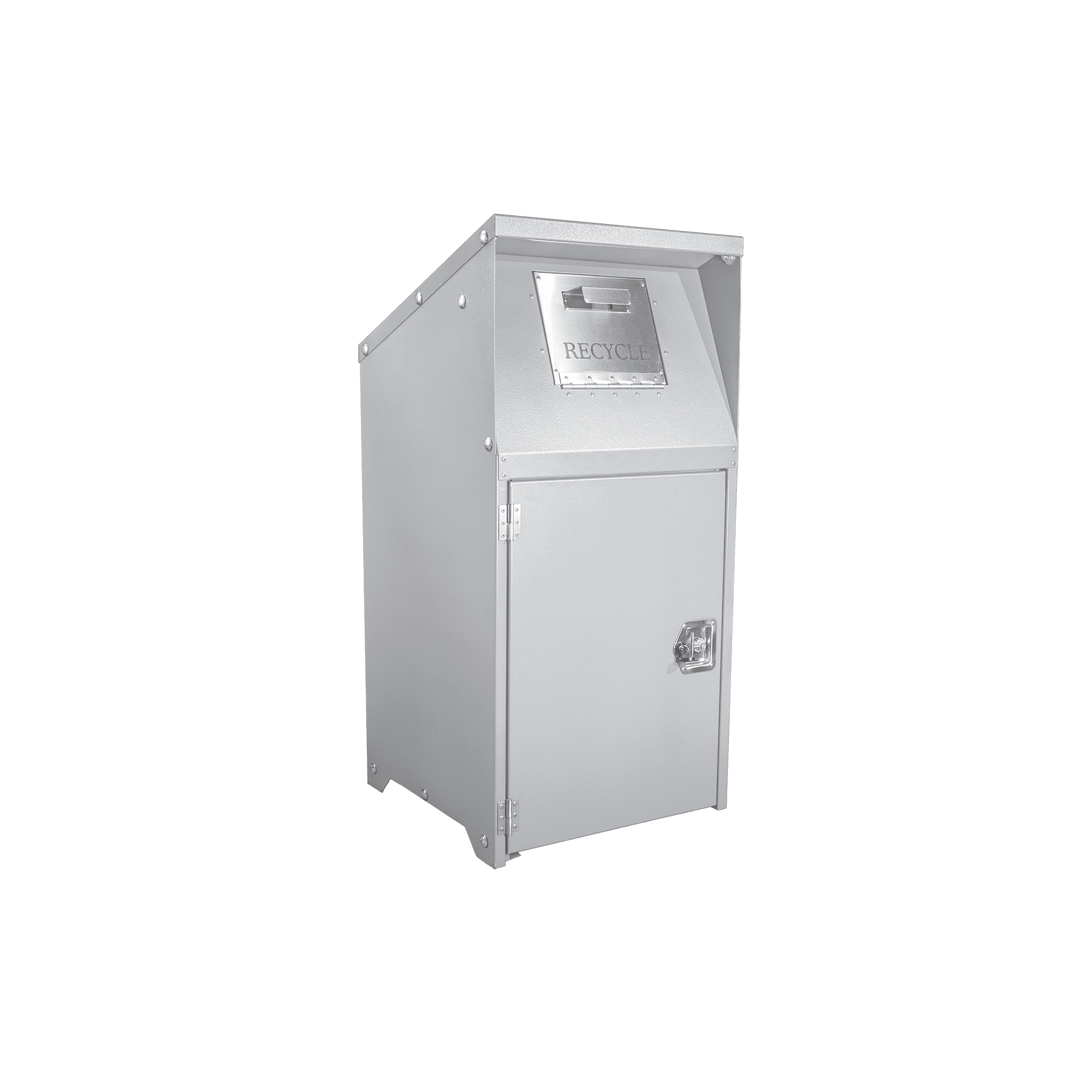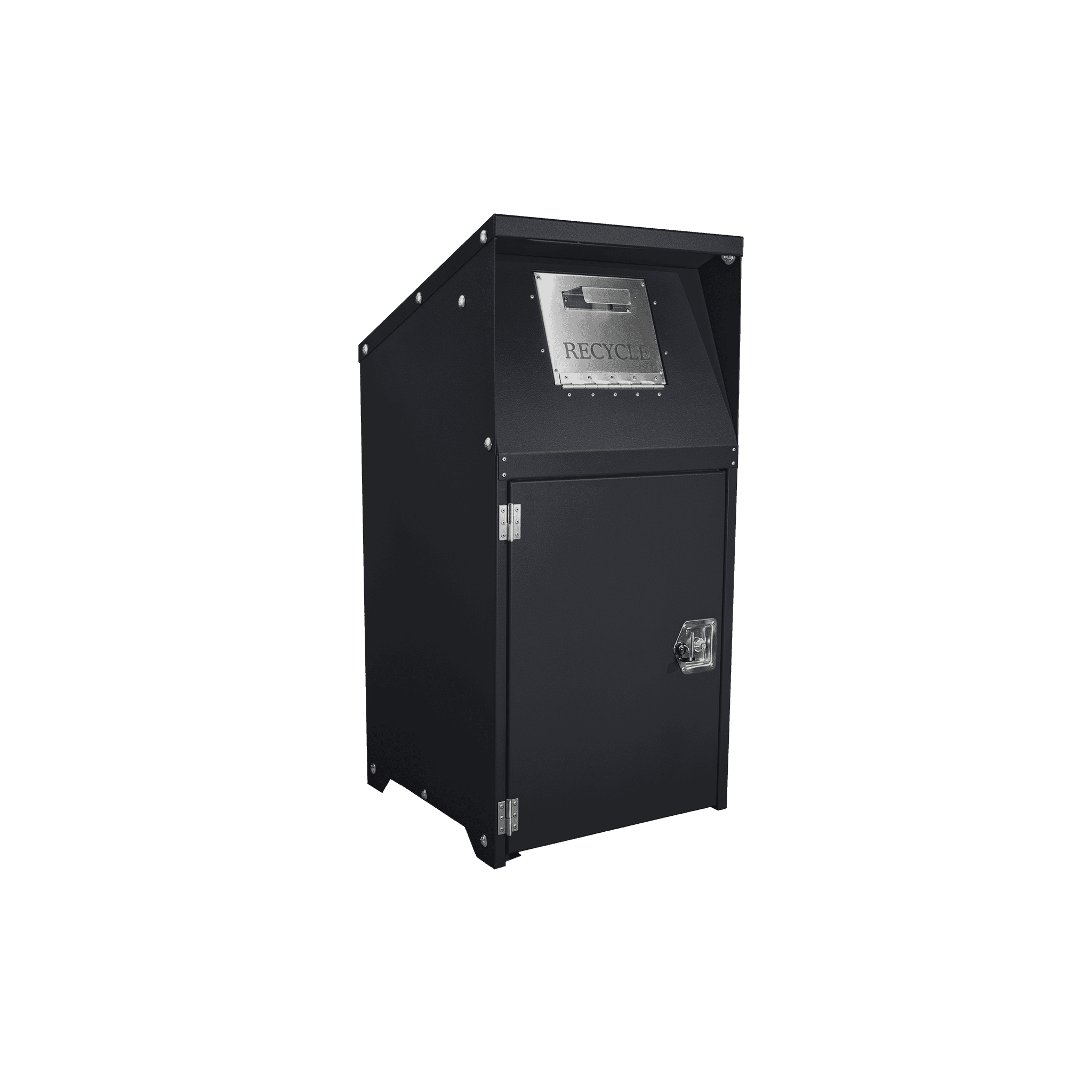 Durable, tamper-resistant trash enclosure engineered for collecting recyclable materials in high-traffic public and commercial environments.